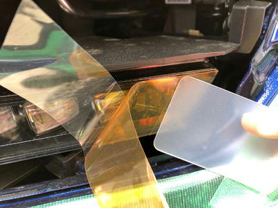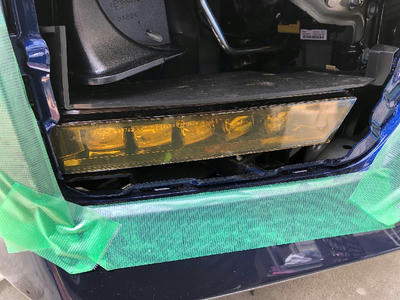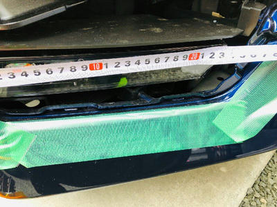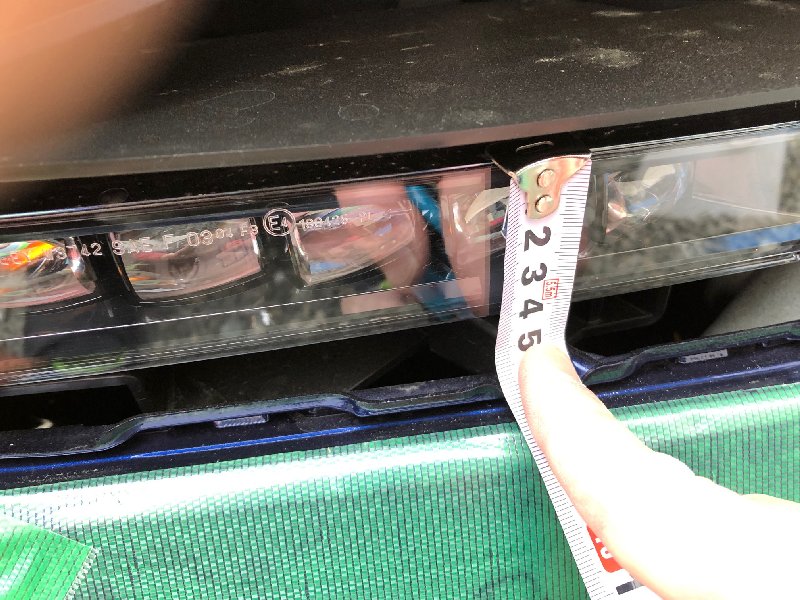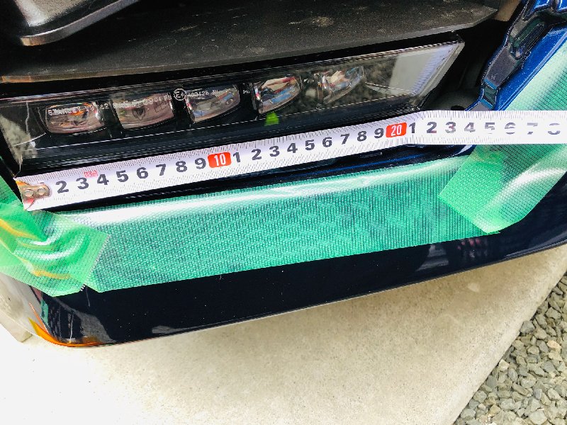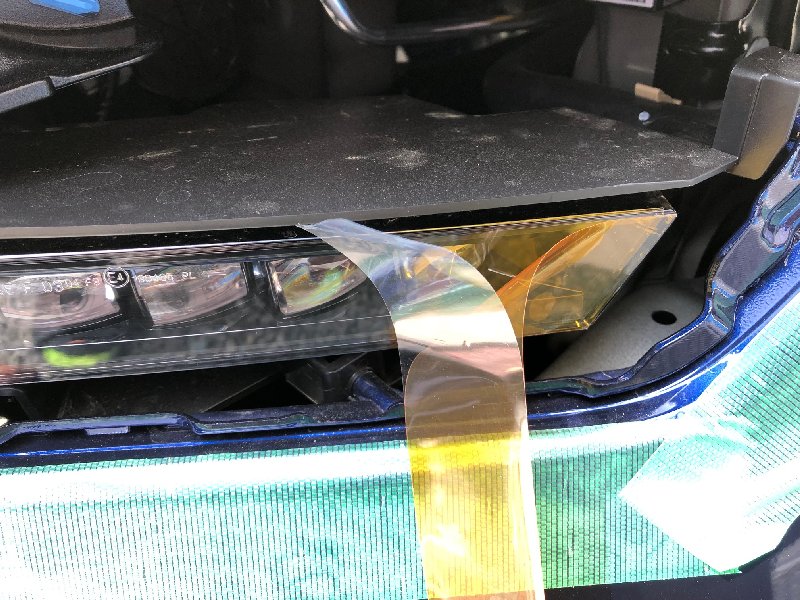 フォグランプカバーへのヘッドライトフィルム装着 エクステリア関連 2019年04月04日 フォグライトガーニッシュを取り外し、黄色のヘッドライトフィルムをフォグランプユニットのカバーに貼り付ける作業をした際の記録です。 カバーの大きさを上のようにメジャーでざっくりと測って貼り付けるフィルムの大きさを、 上底約240mm、下底220mm、高さ37mm の台形の形にすることに。 今回貼り付けるヘッドライトフィルムはこちら。 実際に貼る前に、サイズの確認を。 内側のほうから貼り合わせてから 購入したナビ用の保護フィルムについてきたヘラを使って空気を抜きながらの貼り付け。(このとき結構フィルムの上側の保護フィルムの端側が傷になりましたが、フィルム本体にはまったく傷はつきませんでした。) フィルムの上の保護フィルムを外し忘れて撮影。 フォグライトガーニッシュを嵌め直して作業終了。(ちなみに、上の写真ではまだ保護フィルムを外し忘れています。外し忘れた状態でガーニッシュを嵌めてしまいましたが、あとでガーニッシュを外さずに保護フィルムを剥がしました。笑) ← バナークリックにご協力を [0回]PR