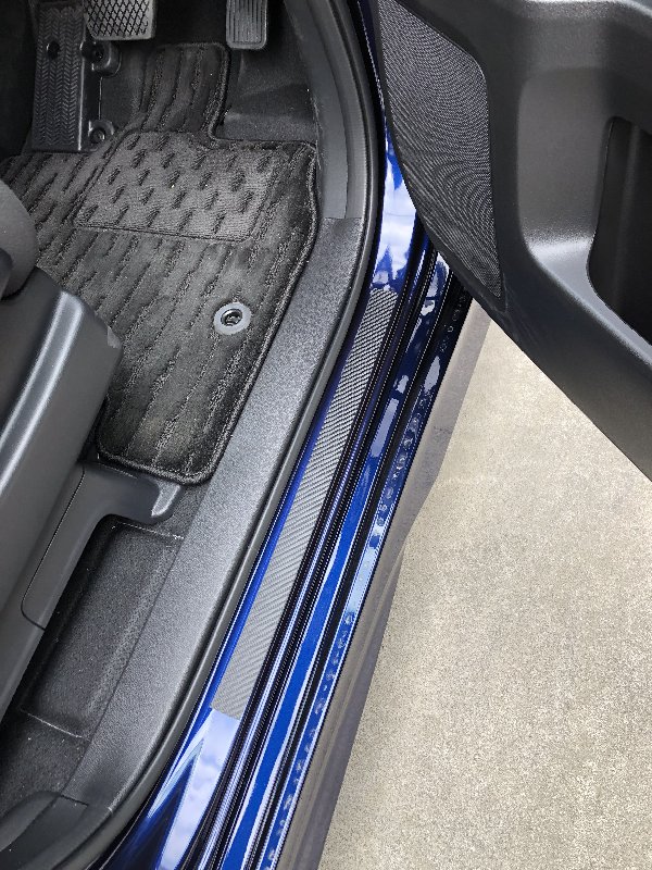 将来的には、スカッフプレートを取り付けたいと思うけれど、とりあえずしばらくの間は、カーボン調のフィルムを貼っておくことにしました。